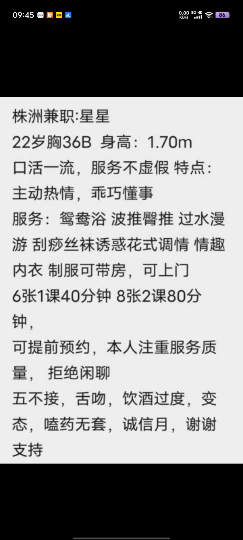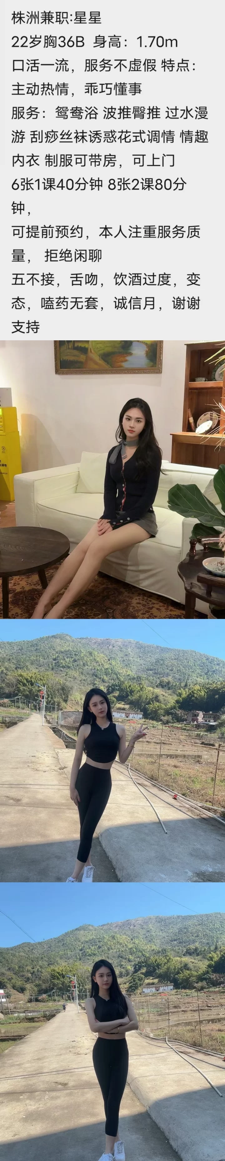 服务项目: 鸳鸯浴,波推,臀推,过水漫游,刮痧丝袜诱惑,情趣内衣,制服,自带房间